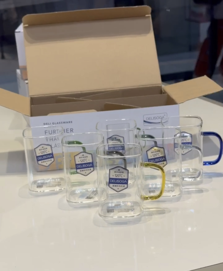 لیوان پیرکس دسته رنگی مربعی دلی سوگا